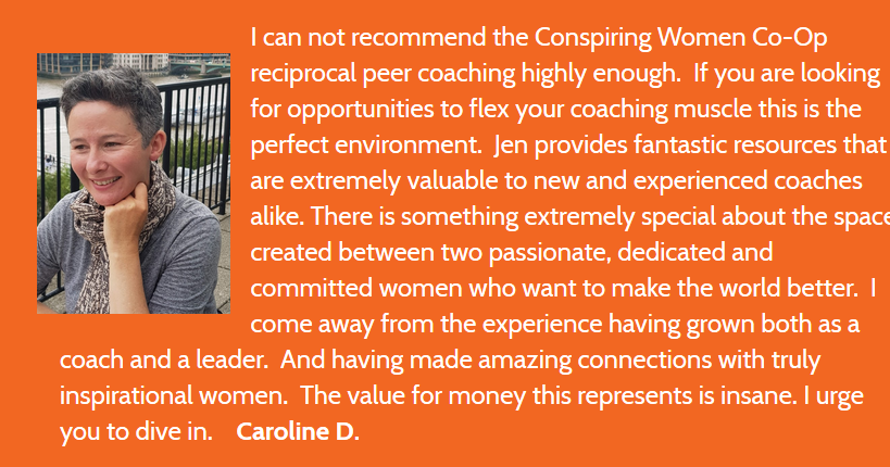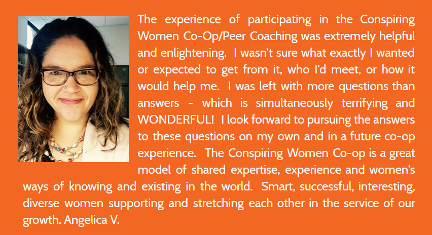 To join the Conspiring Women Peer Coaching Co-Op, we require a one-time application and application fee of $19 to ensure that all members are ready to coach and be coached, including a reference check. Once you are apply, you can join any round of reciprocal peer coaching and have the benefit of coaching year-round.